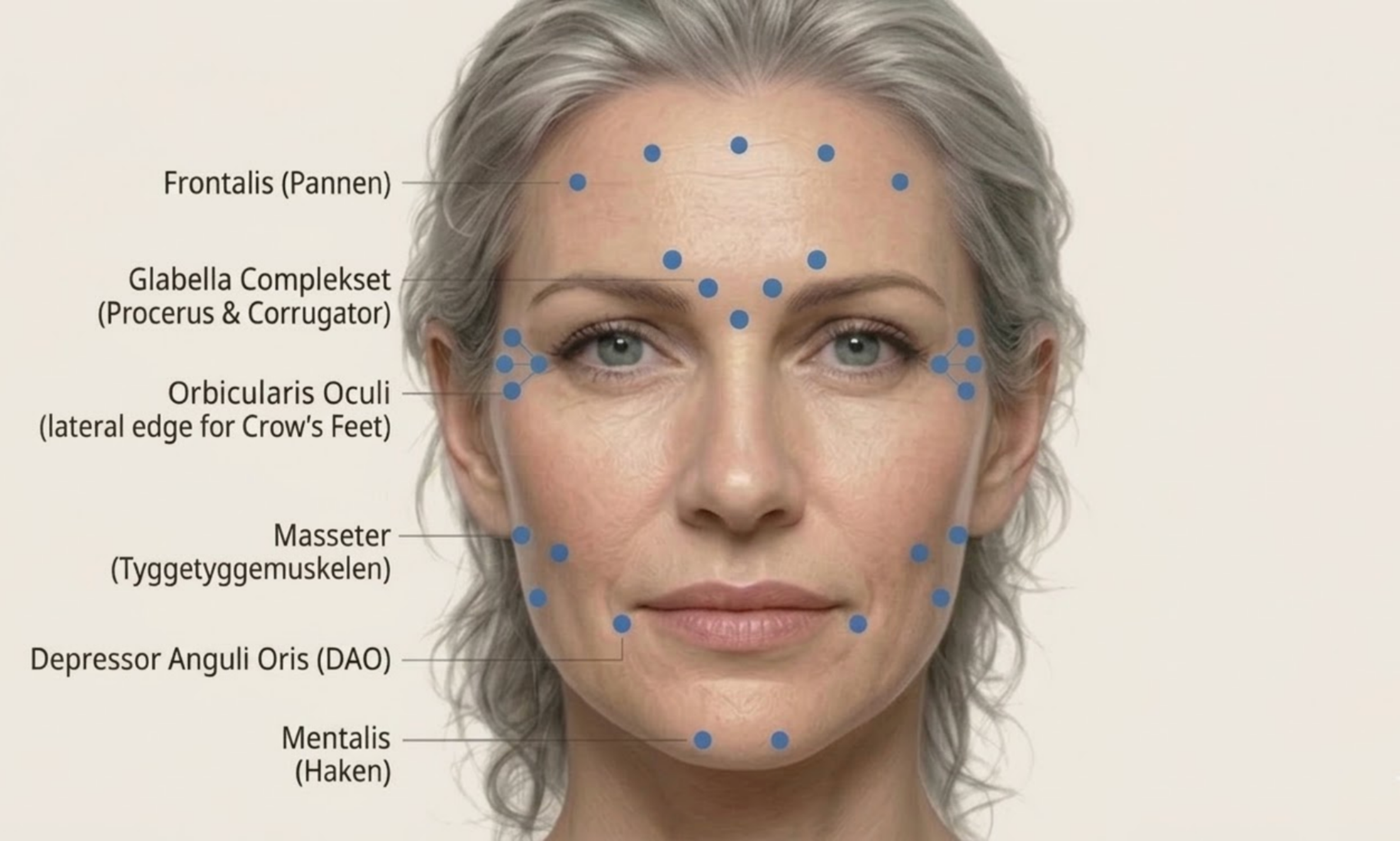 Alle behandlinger starter med en individuell medisinsk vurdering. Resultatet tilpasses ansiktets anatomi og muskelaktivitet.